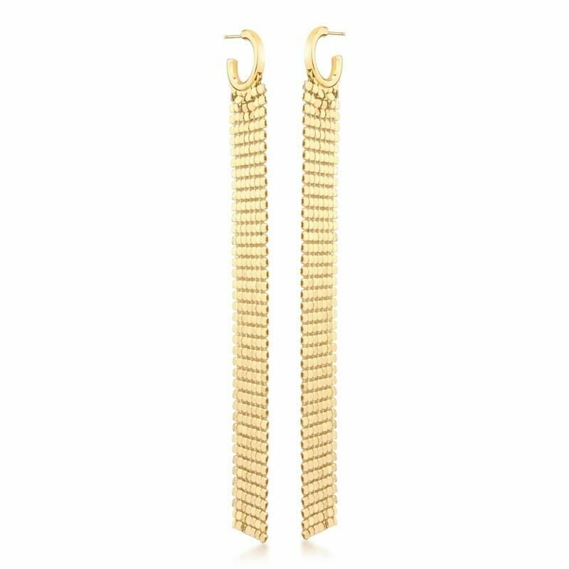 Brinco Longo Argola com Paetês Semijoia Banho Ouro