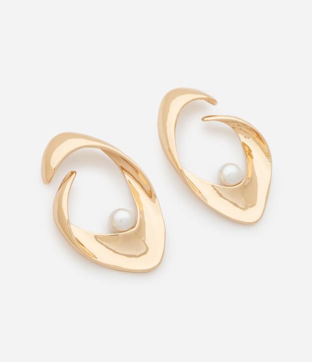 Brinco Médio Argola Frontal com Pérola Artificial Dourado