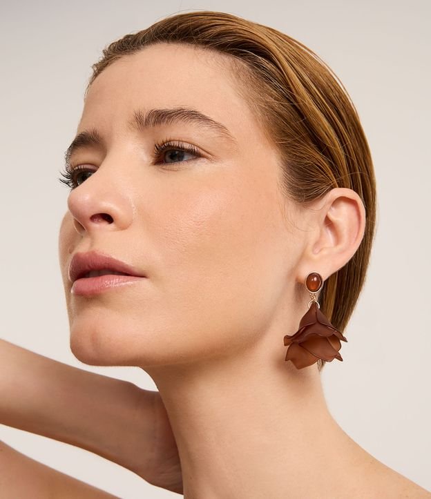 Brinco Médio com Pétalas de Resina Marrom
