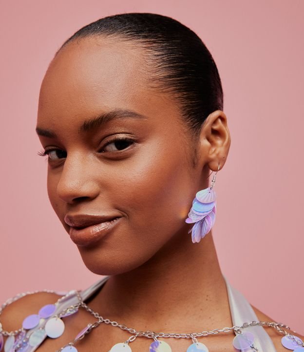 Brinco Médio de Anzol com Escamas de Sereia Holográficas Lilás