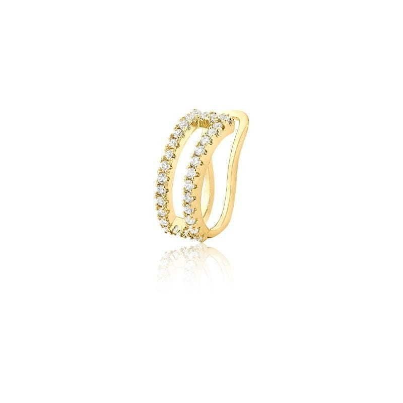Brinco Piercing 2 Fileiras Zircônias Semijoia Banho Ouro Dourado