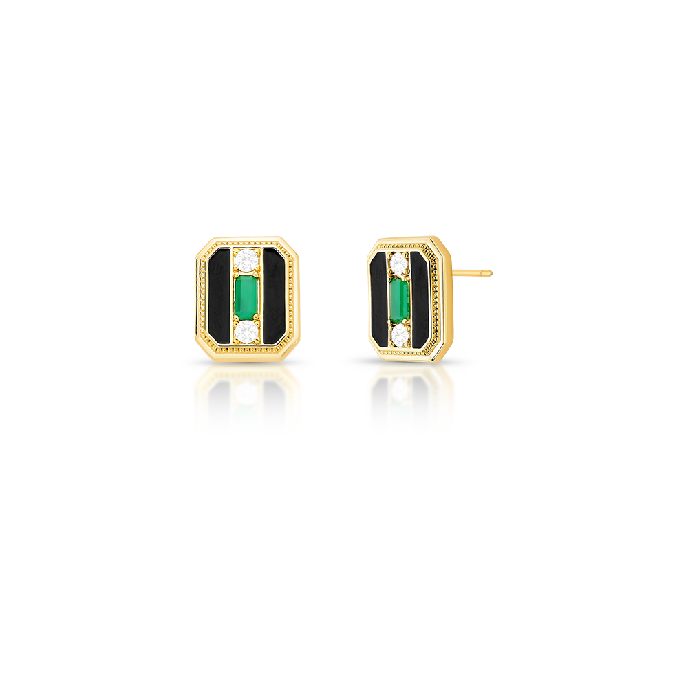 Brinco Quadrado Esmaltado Preto com Detalhes de Cristal Verde e Zircônia Banhado a Ouro Semijoia Ania Store