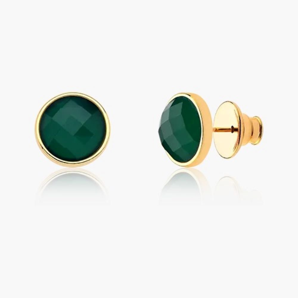• Brinco Redondo Pedra Natural Ágata Verde Semijoia Banhado a Ouro 18k Ania Store