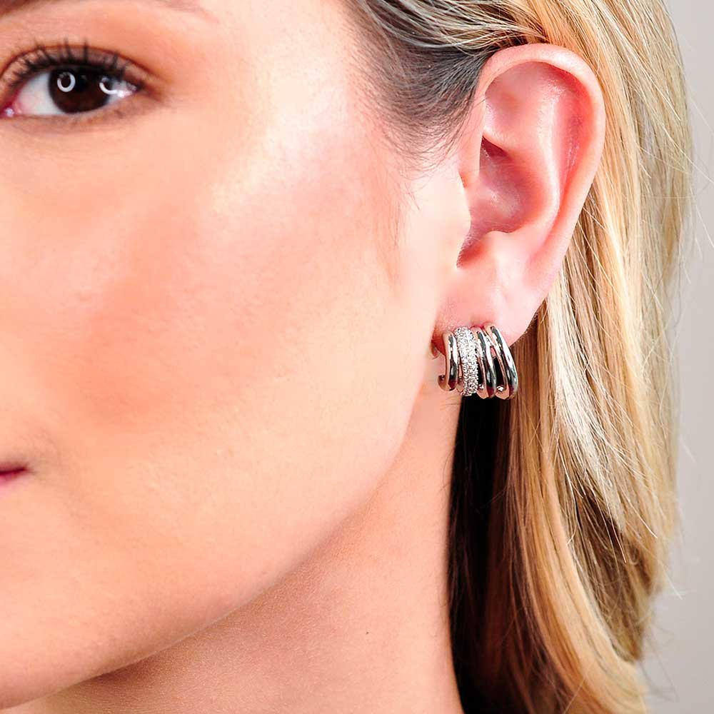 • Brinco Semijoia Quatro Vias Liso e Cravejado Pri Acessorios Feminino Prata 3