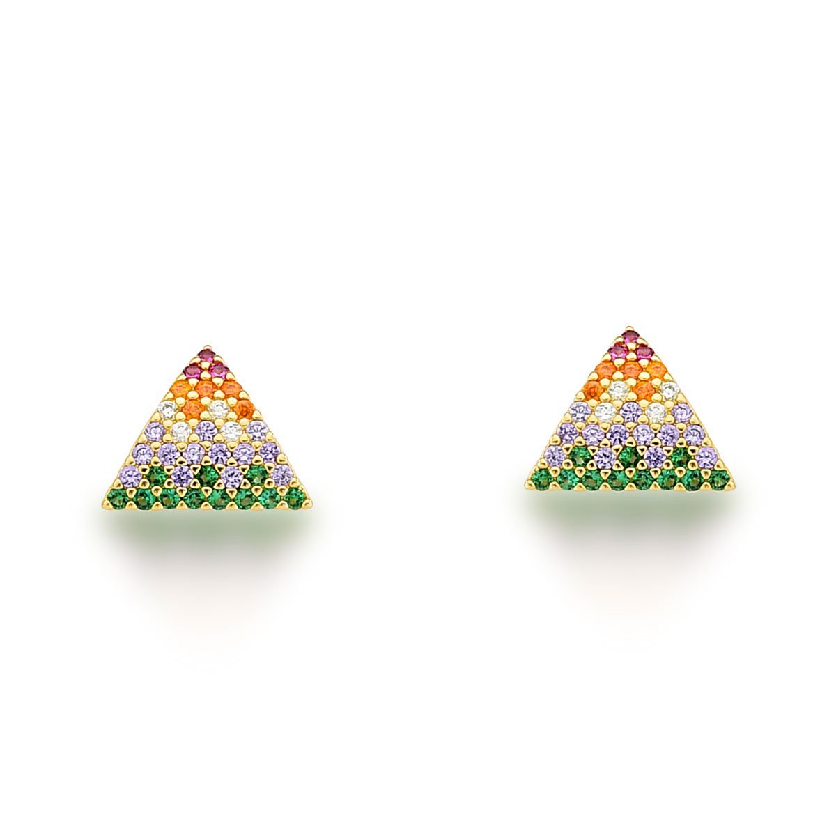 Brinco Triangulo brilhoso Colorido Banhado a Ouro 18k Multicores