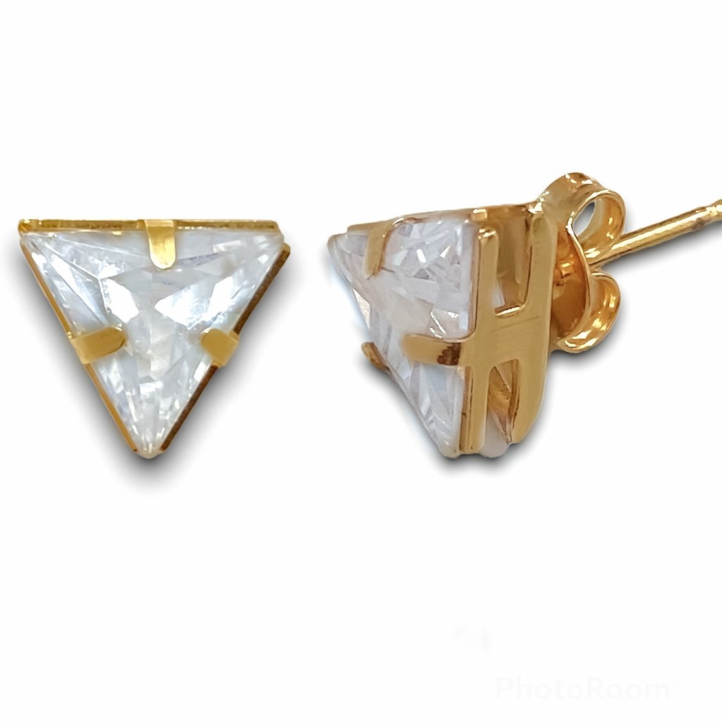 Brinco Triangulo de Zirconia Banhado Ouro 18k