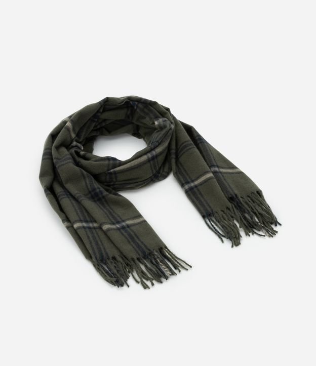 Cachecol Dupla Face Xadrez com Franjas nas Pontas Verde