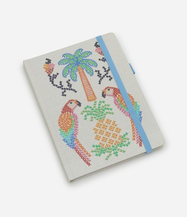 Caderno feminino confeccionado em material mais sustentável. Possui estampa de arara texturizada
