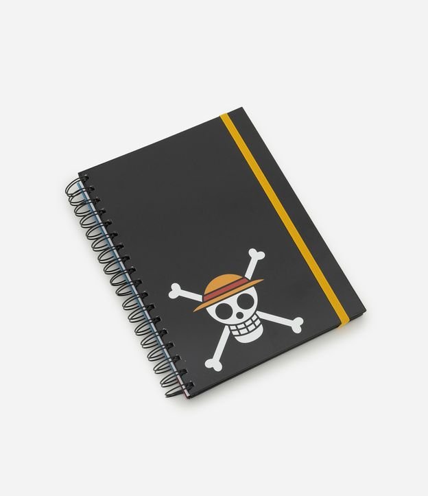 Caderno em Papel com Elástico e Estampa One Piece Preto