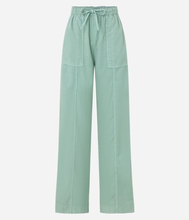 Calça Wide Leg em Sarja com Amarração e Recortes