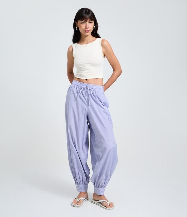 Calça Aladim Alfaiatada com Listras e Amarração Azul