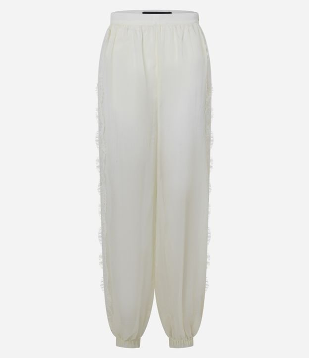 Calça Aladim em Chiffon com Renda Lateral Off White