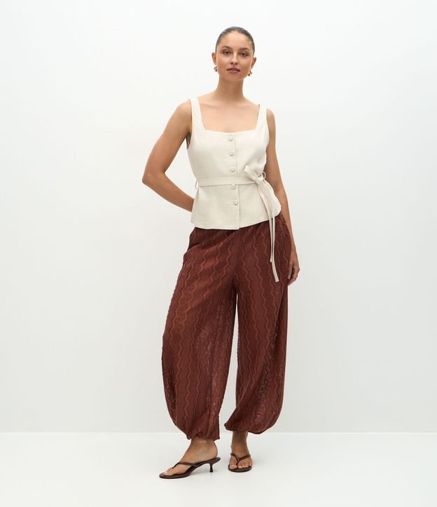 • Calça Aladim em Malha Texturizada com Elástico na Cintura Marrom 1