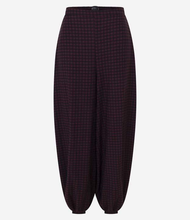 Calça Aladim Xadrez em Crepe com Elástico Vermelho
