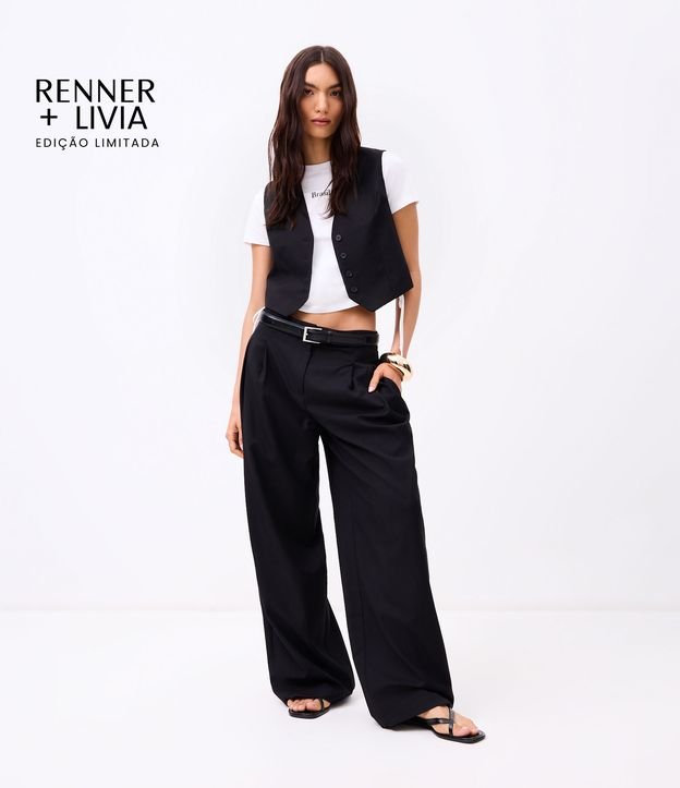 Calça Alfaiatada Cintura Baixa com Pregas e Cós Ajustável