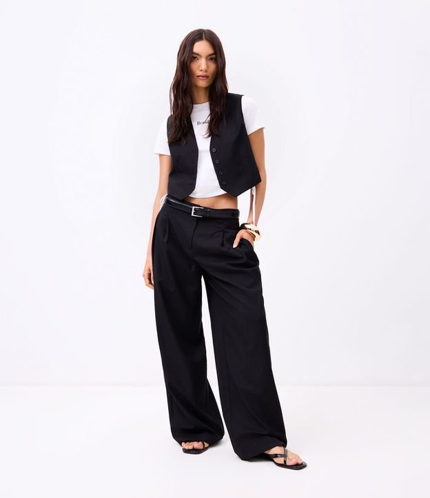 Calça Alfaiatada Cintura Baixa com Pregas e Cós Ajustável Preto
