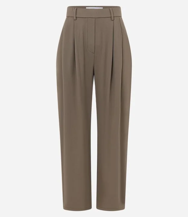 Calça Alfaiatada em Microfibra com Pregas Frontais Marrom