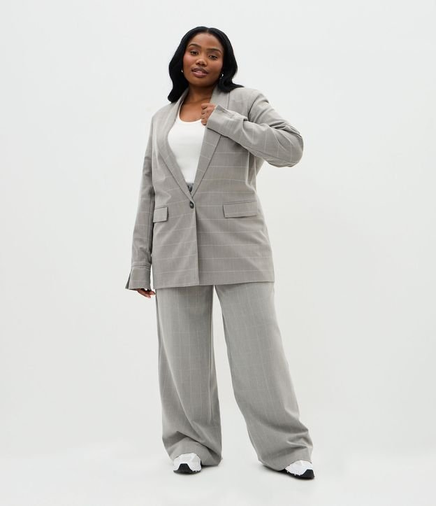 Calça Alfaiatada Wide Xadrez Alongada Curve & Plus Size Cinza