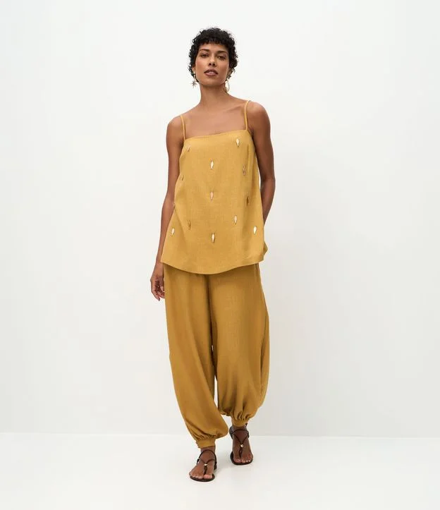 Calça Alladin em Viscolinho com Cós Elástico Amarelo