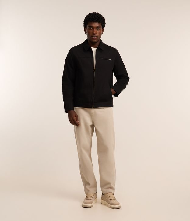 Calça Baggy Chino em Sarja com Bolsos e Detalhe no Cós