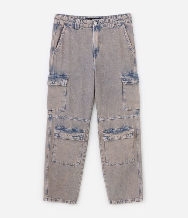 Calça Baggy em Jeans com Bolsos Multi Cargo
