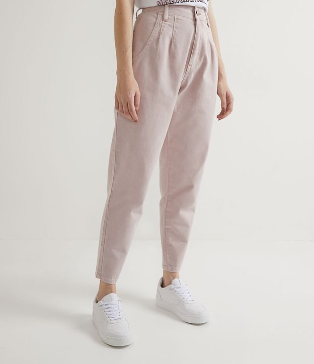 Calça Baggy em Sarja Sem Estampa com Pregas Frontais