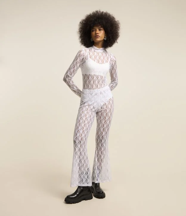 Calça Bailarina em Renda Texturizada e Cós Elástico
