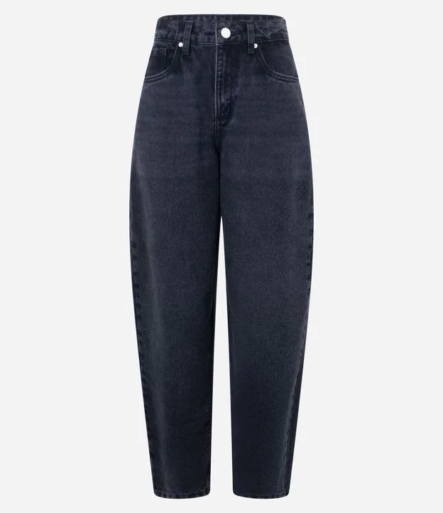 Calça Ballon Cintura Alta em Jeans com Bolsos Preto