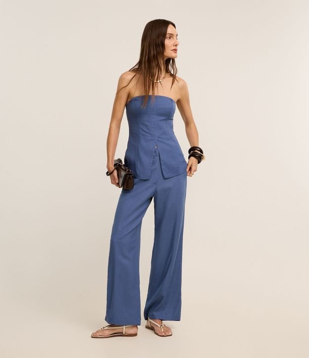 Calça Balloon Cintura Alta em Viscolinho com Azul Denim