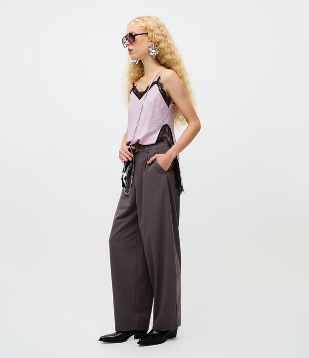 Calça Barrel Alfaiatada com Recortes Frontais Cinza