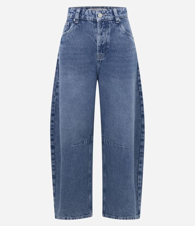 Calça Barrel em Denim com Cintura média e Five Pockets Estruturados Azul