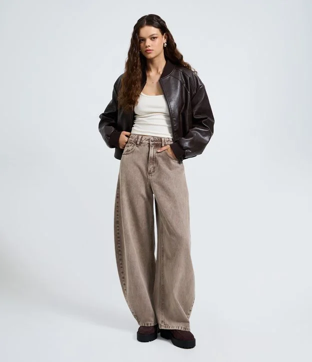 Calça Barrel em Jeans Cationizado com Cintura Alta Marrom