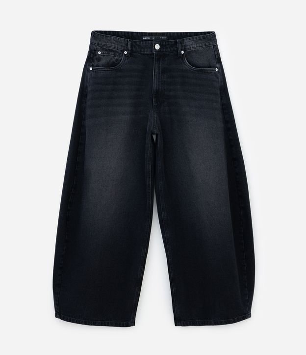 Calça masculina confeccionada em jeans mais sustentável com boas práticas ambientais no modelo barrel, a peça possui cós com passante, fechamento tradicional e bolsos.