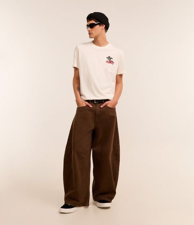 Calça Barrel em Sarja com Recorte Lateral e Pences nos Joelhos