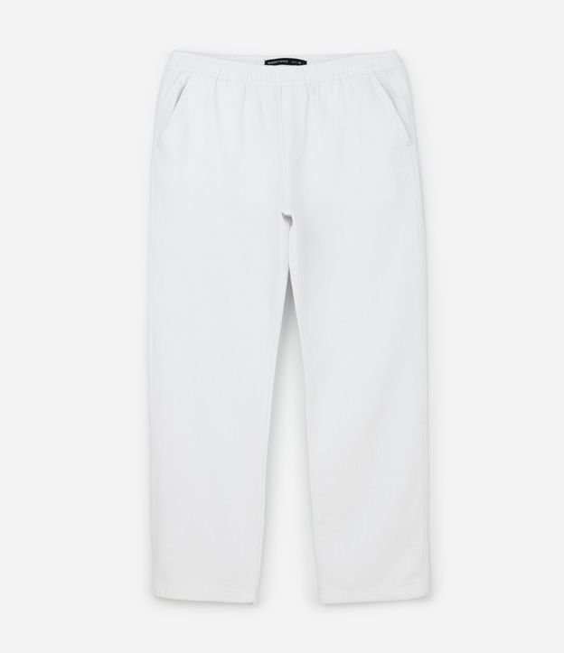 Calça Básica em Cotton Texturizado com Cós Elástico Branco