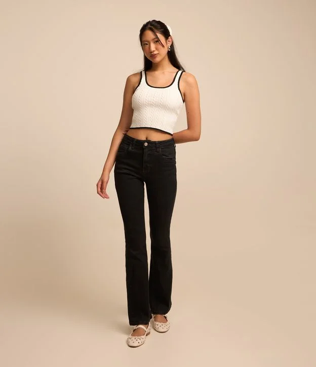 Calça Boot Cut em Jeans Sobretinto com Bolsos Preto