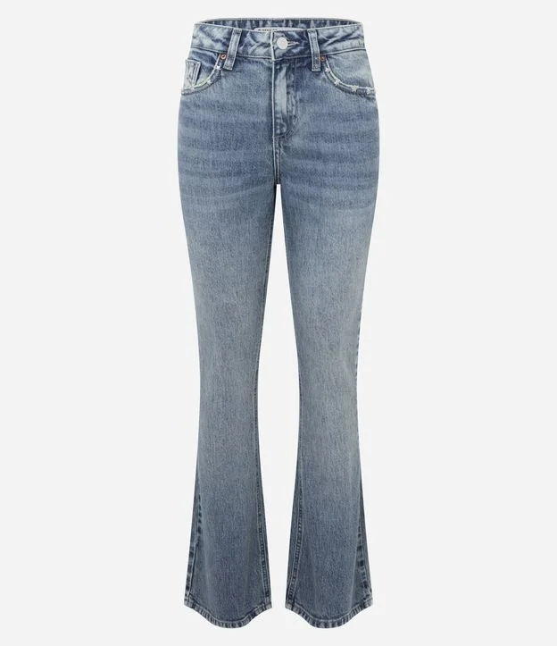 Calça Bootcut em Jeans com Cintura Média e Tachas Estrela Azul Claro
