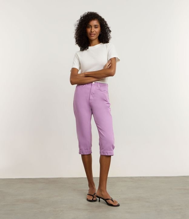 • Calça Capri em Sarja com Cintura Média e Fenda Lateral Roxo 1