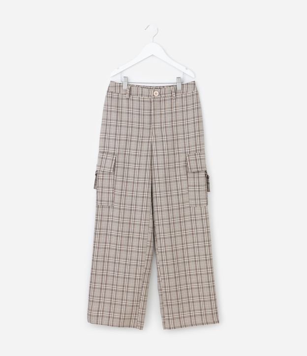 Calça Cargo Infantil em Alfaiataria Xadrez – Tam 5 a 14 Anos Bege
