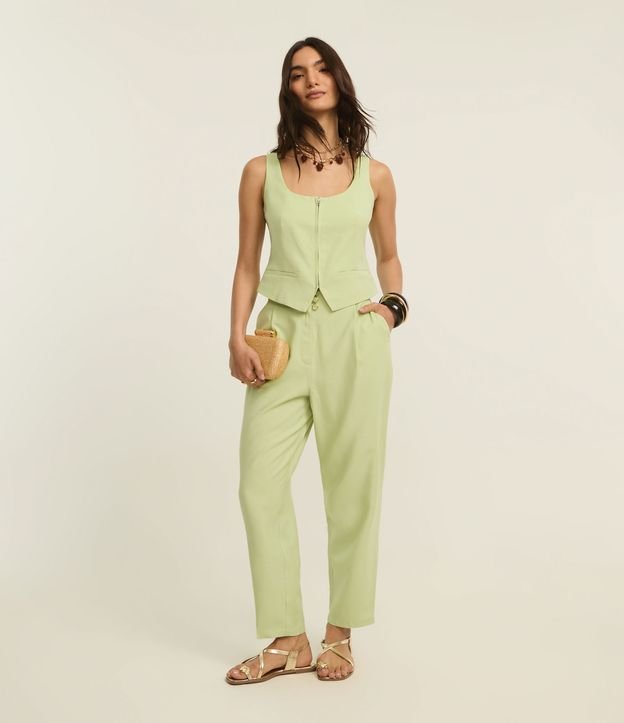 Calça Cenoura Alfaiatada Cintura Alta em Crepe com Bolsos Verde
