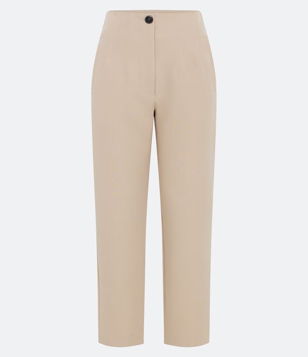 Calça Cenoura Alfaiatada com Botão Decorado no Cós Bege