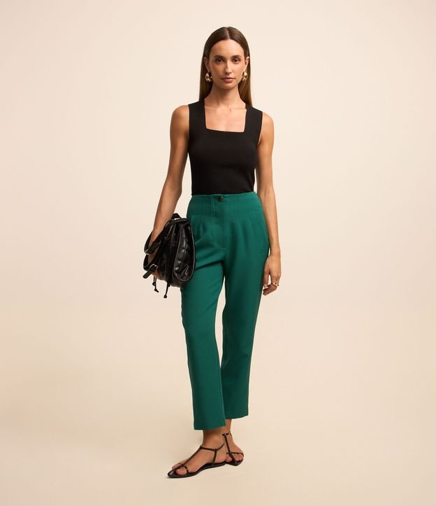Calça Cenoura Alfaiatada com Botão Decorado no Cós Verde