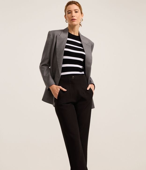 Calça Cenoura Alfaiatada com Botão Decorado no Cós Preto