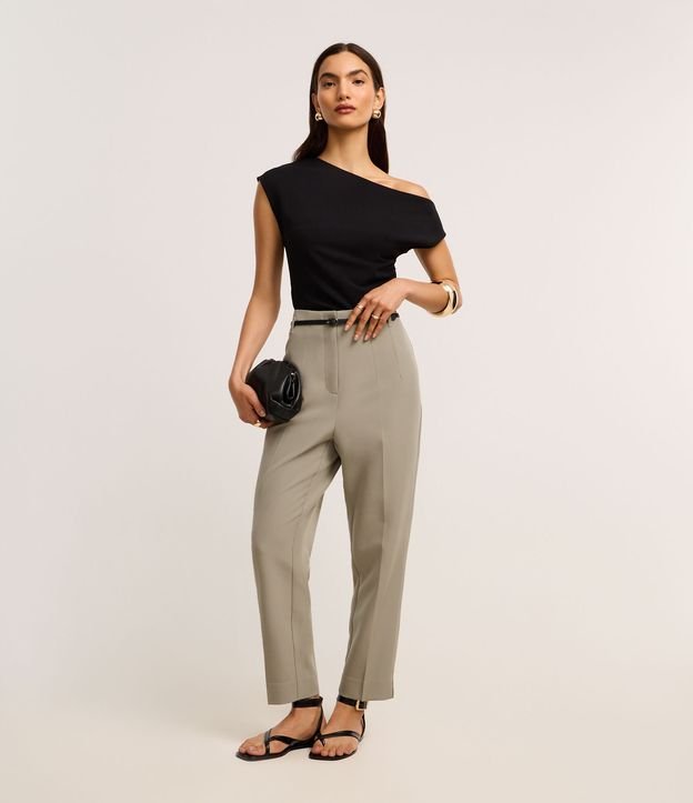 Calça Cenoura Alfaiatada com Cinto Fivela Verde Acinzentado