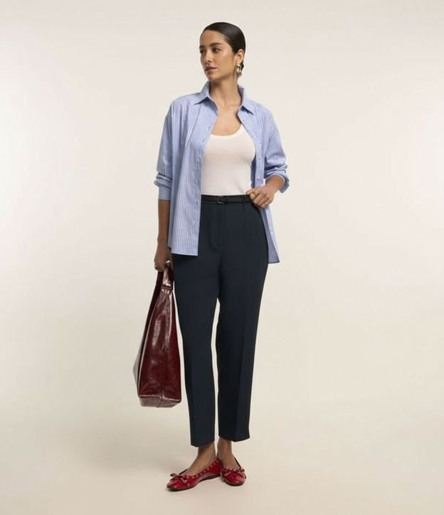 Calça Cenoura Alfaiatada com Cinto Fivela Azul