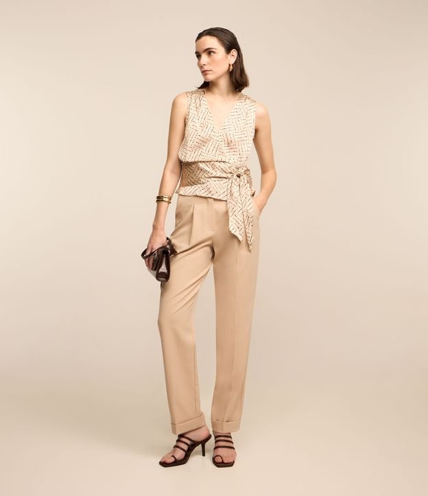 Calça Cenoura Alfaiatada com Pregas e Barra Italiana