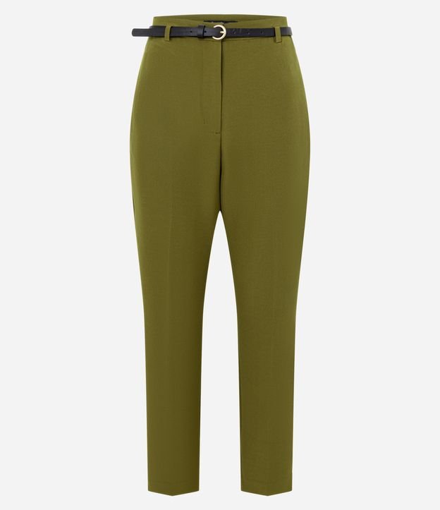 Calça Cenoura Alfaiatada em Crepe com Cinto Fino Verde