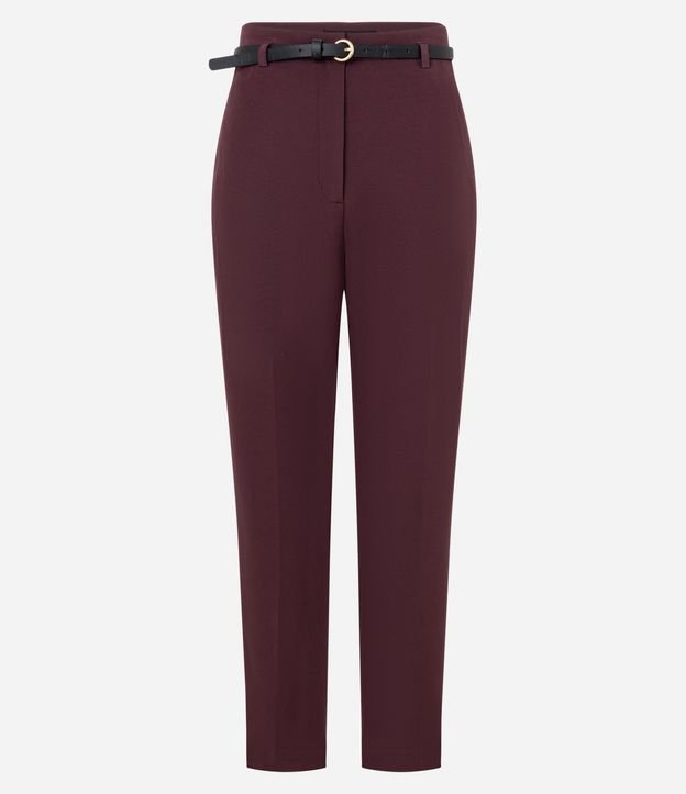 Calça Cenoura Alfaiatada em Crepe com Cinto Fino Vinho