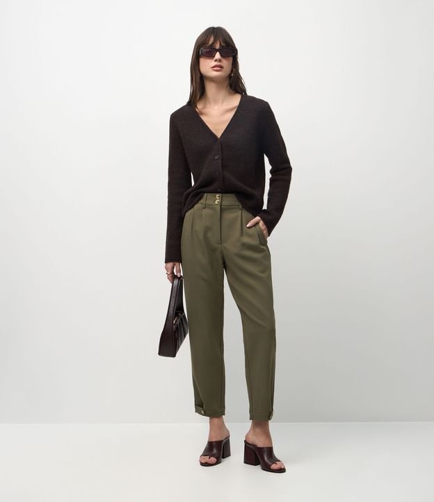 • Calça Cenoura de Alfaiataria com Detalhe na Barra e Botões no Cós Verde 1