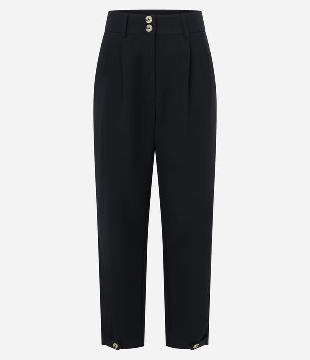 Calça Cenoura de Alfaiataria com Detalhe na Barra e Botões no Cós Preto